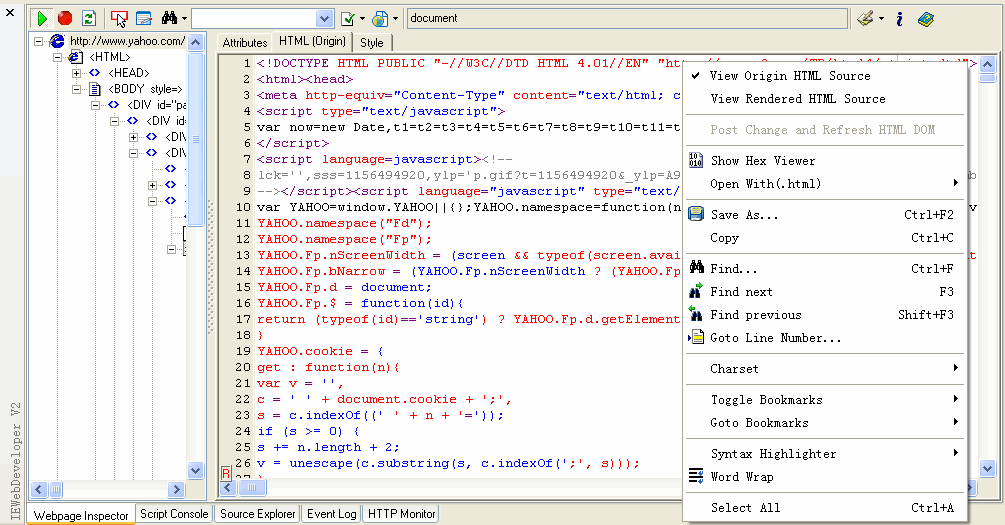 - HTML, JavaScript, CSS, VBS, XML syntax highlighting.
