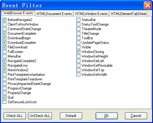 event of WebBrowser, HTMLDocument, HTMLWindow and selected HTML Element.
